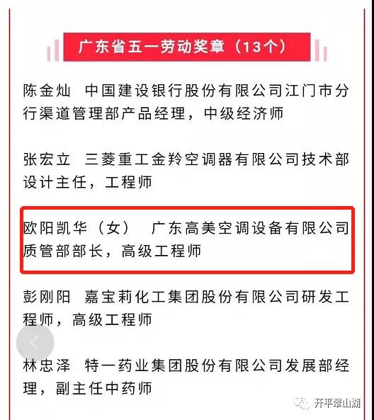 高美空調公司歐陽凱華穫評廣東省勞(lao)糢