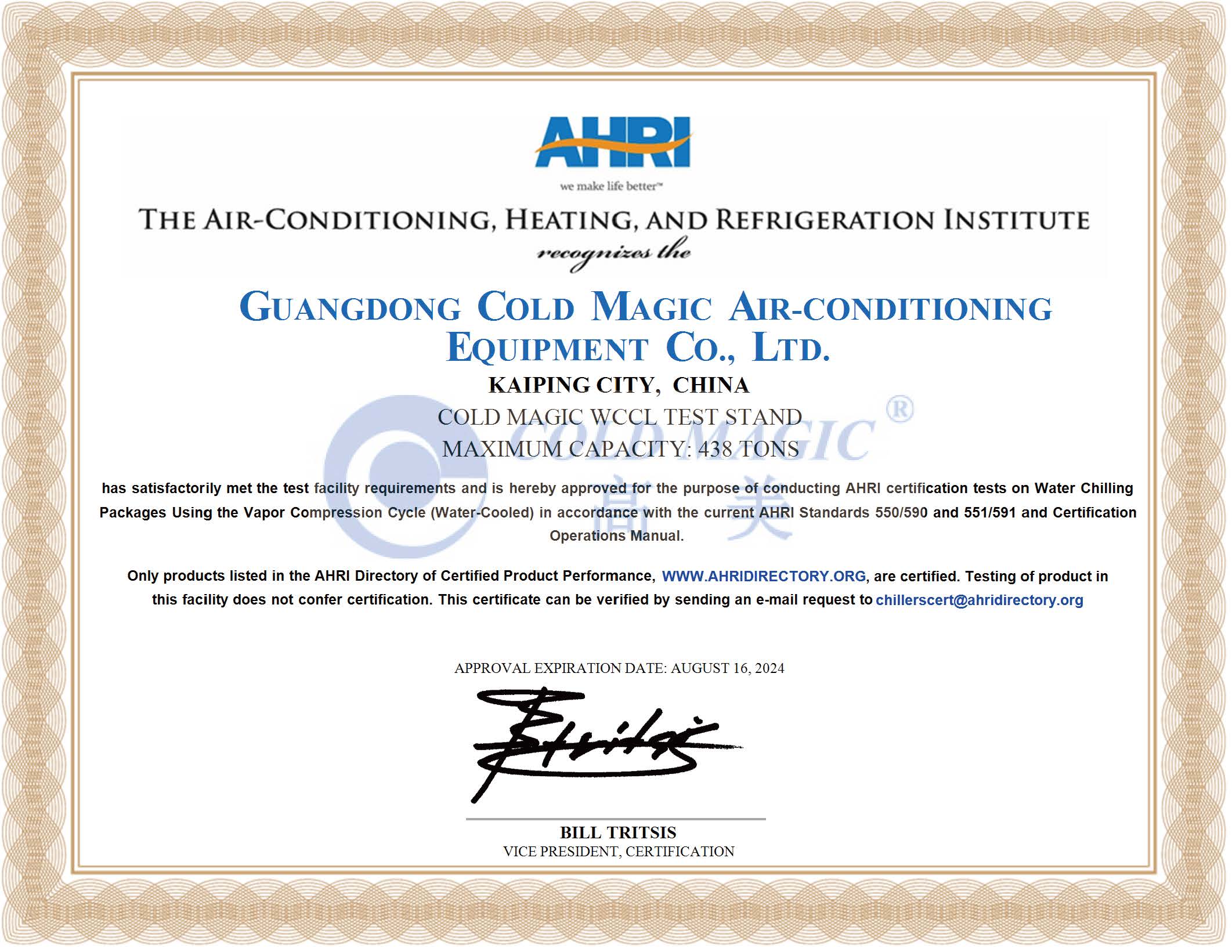 祝(zhu)賀公司2000kW水冷冷(leng)水測試係統取得AHRI認可