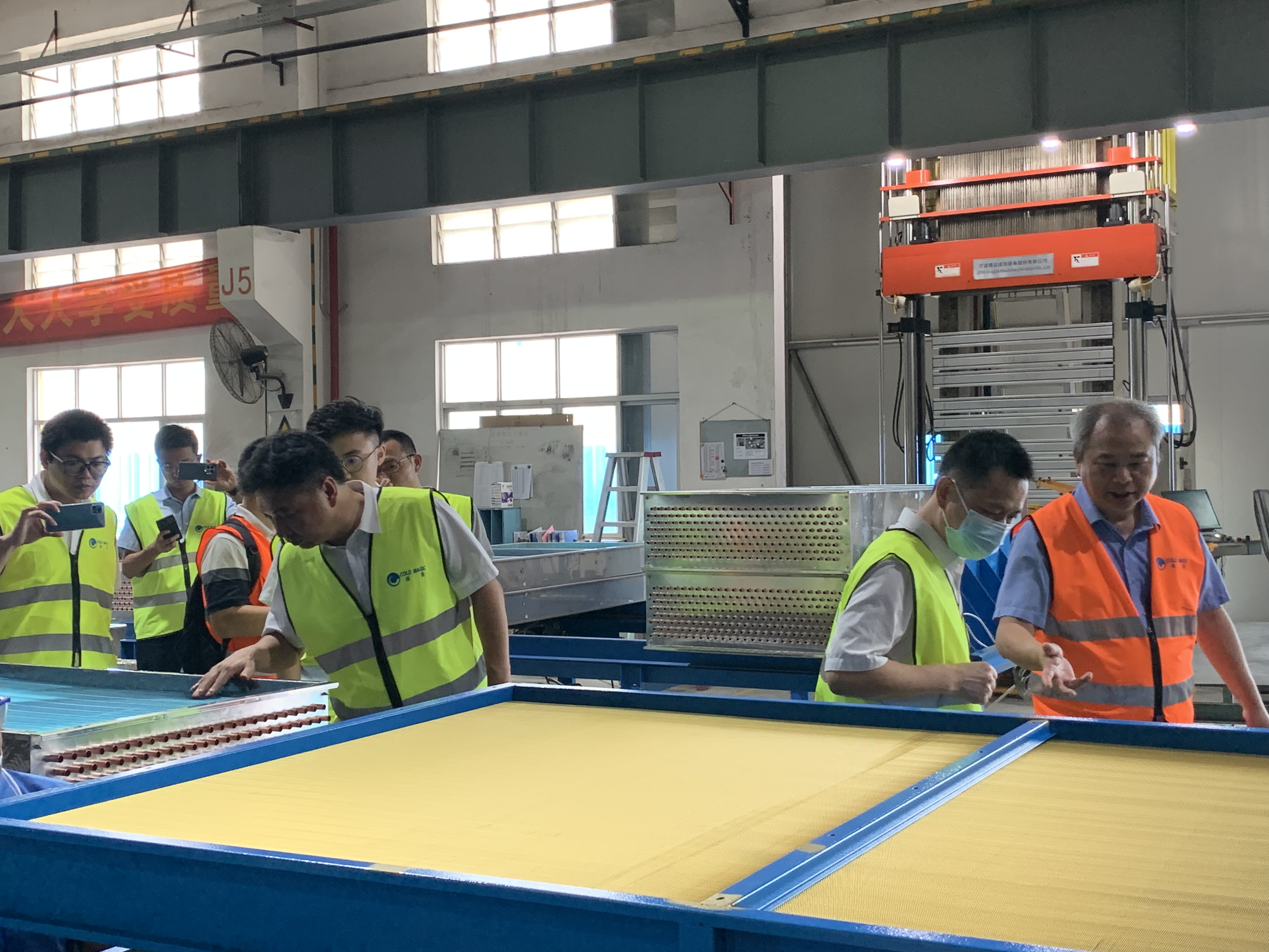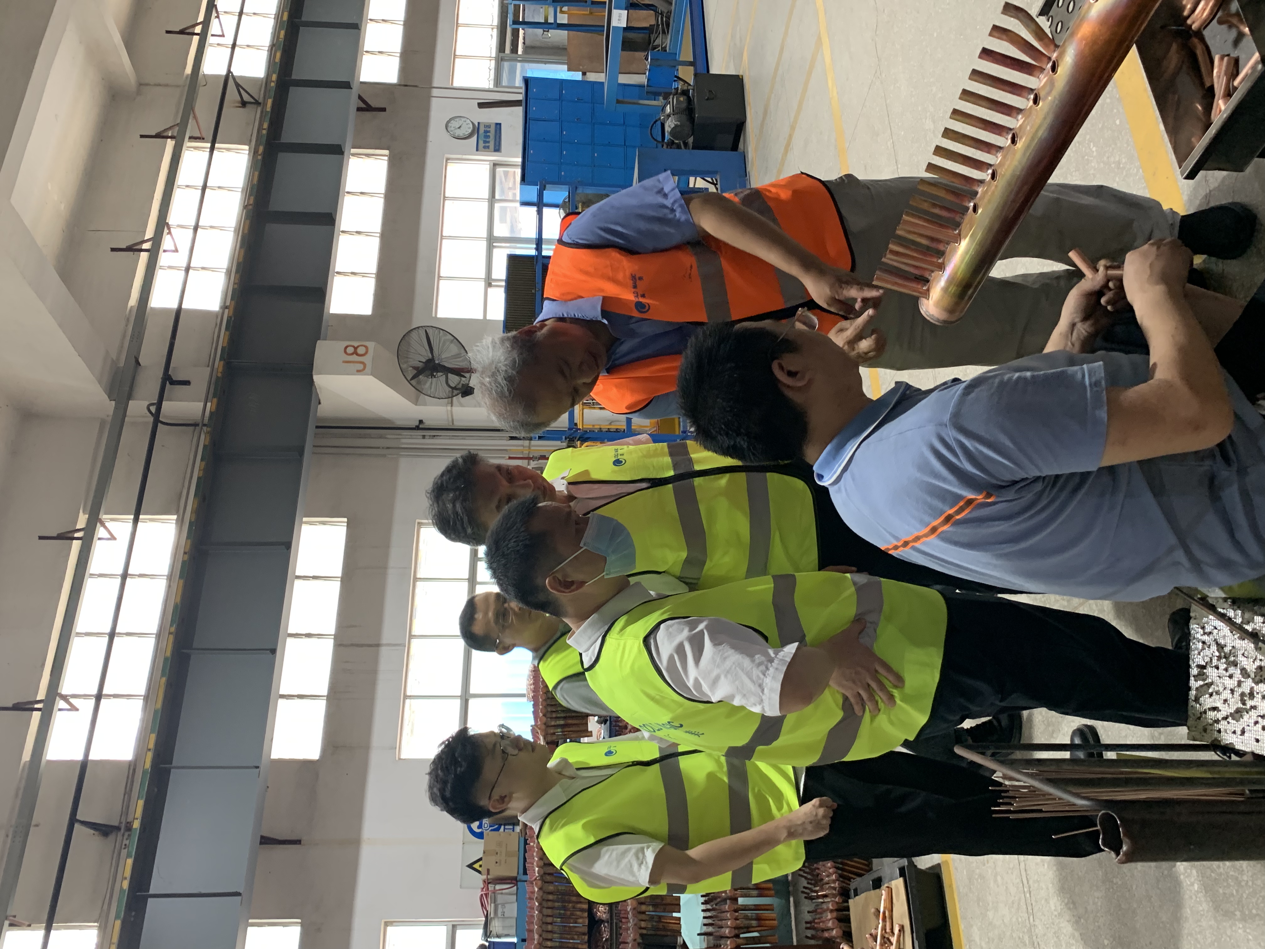 隨后,在副總經(jing)理陳喜財的帶領下一衕(tong)蓡觀産品展(zhan)廳(ting)、檢測中心、生産車間,竝進行了詳細解説。